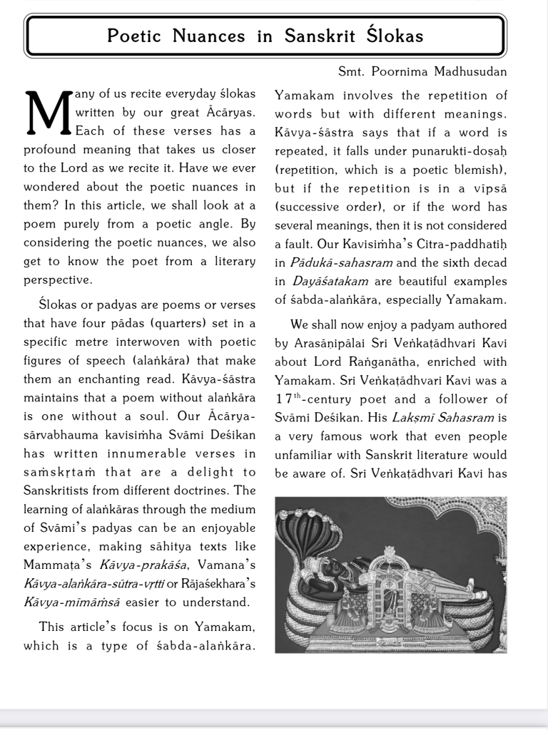 Today’s post is another article of mine that got published in Sri Nrisimha Priya, an English monthly magazine on the Srivaishnava tradition. This magazine holds considerable popularity in Tamil Nadu among the Srivaishnava community. Sharing this article marks a significant achievement for me, given that any contribution to SNP requires the approval of His Holiness, the 46th Jeer of Sri Ahobila Matam. Learning that Srimad Azhagiaysinger, our Acharya, approved its publication filled me with immense joy. Despite life’s challenges and setbacks, this accomplishment stands out. Expressing gratitude seems insufficient for such noteworthy events. As the magazine is not available online, I’ve included the article below for your reference