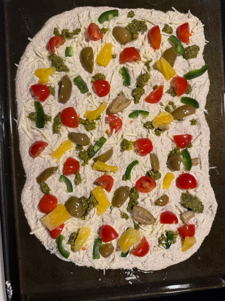 Here’s a picture of my delicious flatbread (though I think the shape could use a geometry upgrade).